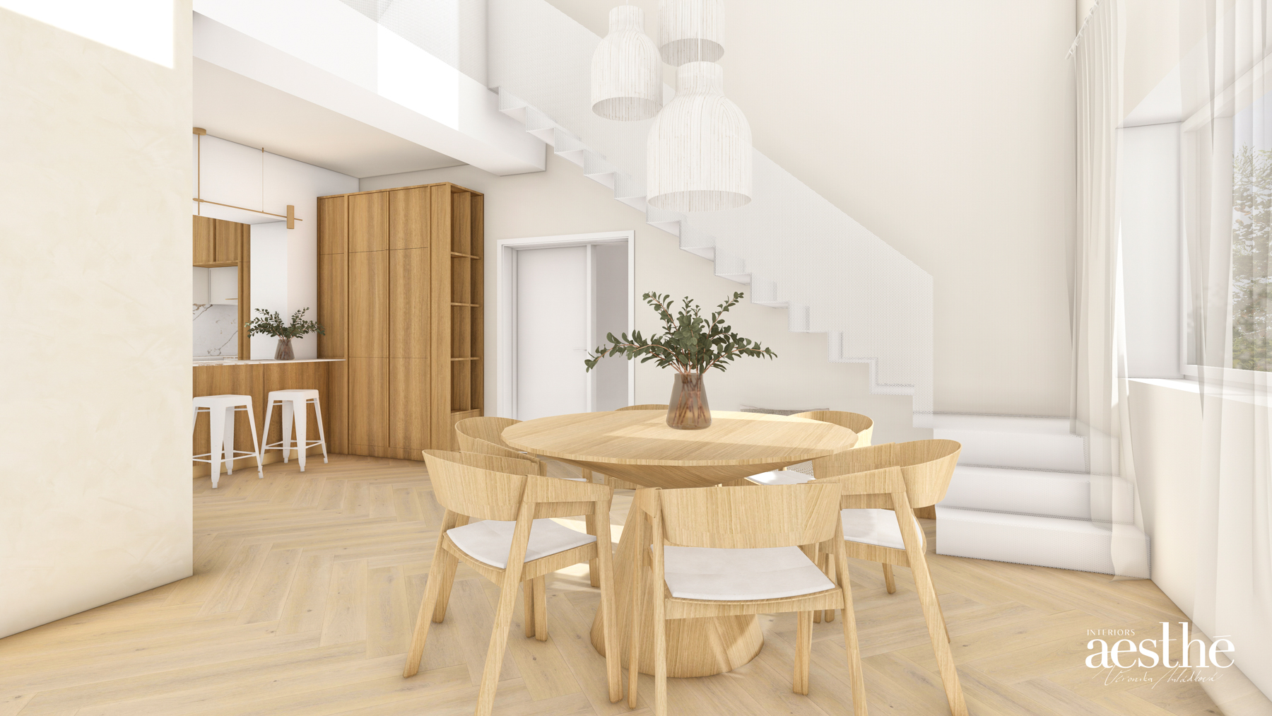 V novostavbě rodinného domu vznikl svěží hravý interiér s domácí atmosférou a otiskem vkusu i charakteru rodiny. Projet domu měl mnohá úskalí v nedostatečném nadimenzování místností. Proto jsme hledali nové řešení, které by provozně lépe fungovalo a lépe splňovalo rodinné požadavky. Upravilo se projektové uspořádání místností i rozvržení kuchyně tak, aby interiér dostal vzdušný a moderní charakter. Barevná paleta hraje veselými zeleno-růžovými tóny, které se prolínají napříč prostorem.